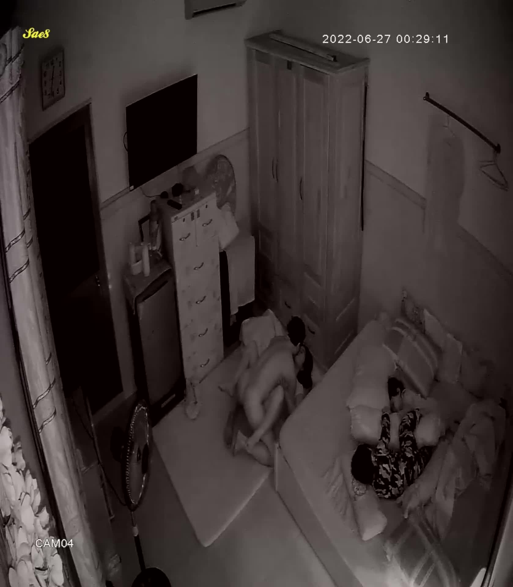 摄像头夜视拍摄小夫妻熬到小孩睡着了才能做爱做的事。