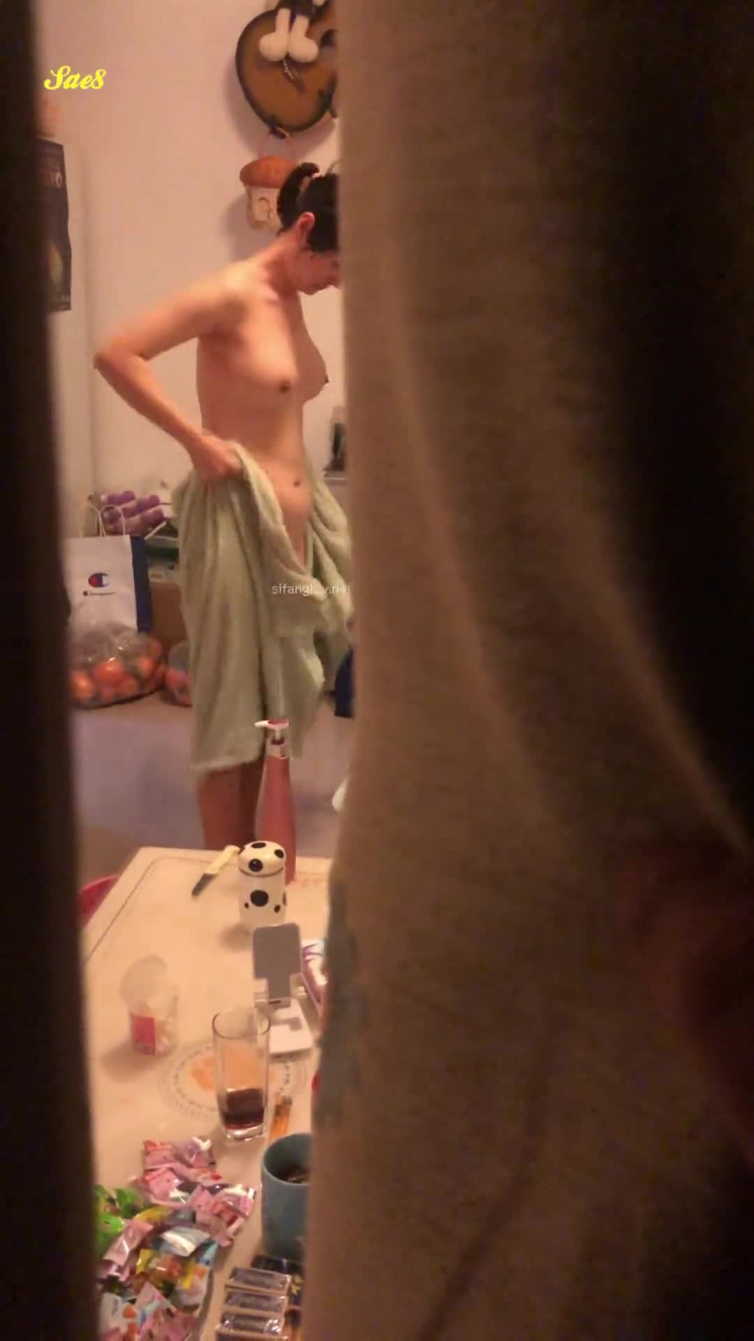 去表哥家串门偷窥表嫂刚洗完澡换衣服